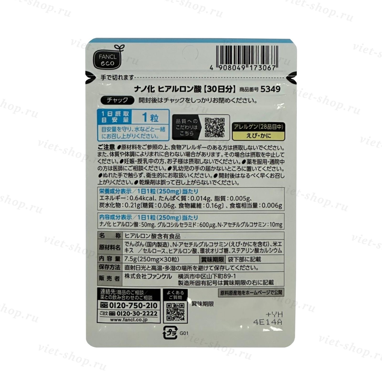 Наногиалуроновая кислота FANCL Nano Hyaluronic Acid на 30 дней, Япония